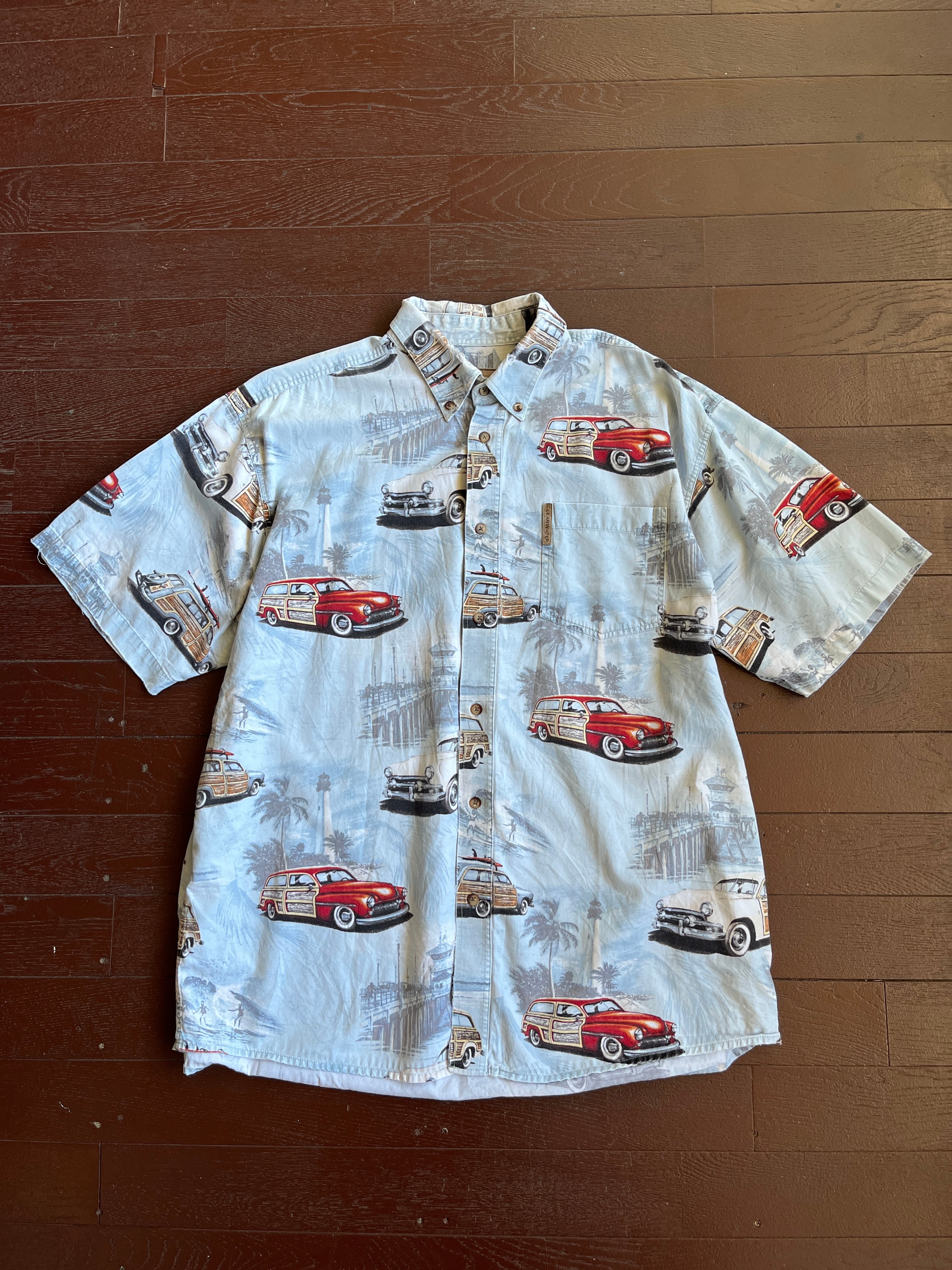 90's Clear Water Classic Cars Button-down shirt アロハ 車 柄シャツ ボタンダウン